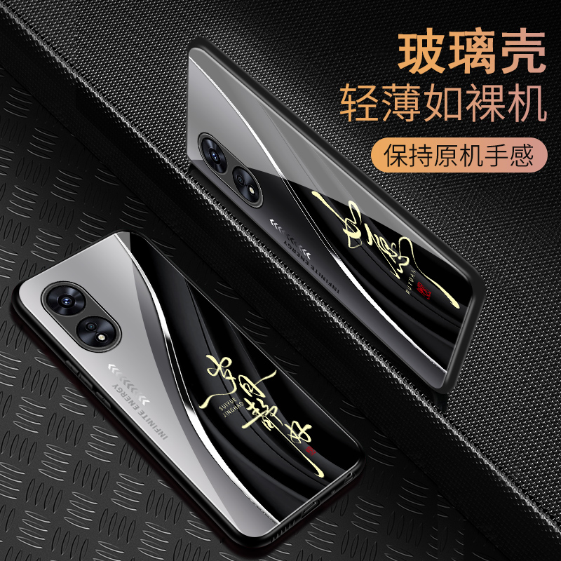 适用于OPPOA97手机壳玻璃5G简约新款 潮牌硅胶手机套a97超薄外壳OPPO高颜值 男女网红创意保护套镜面时尚