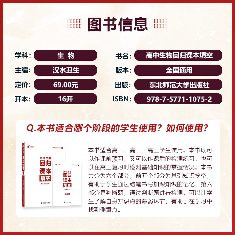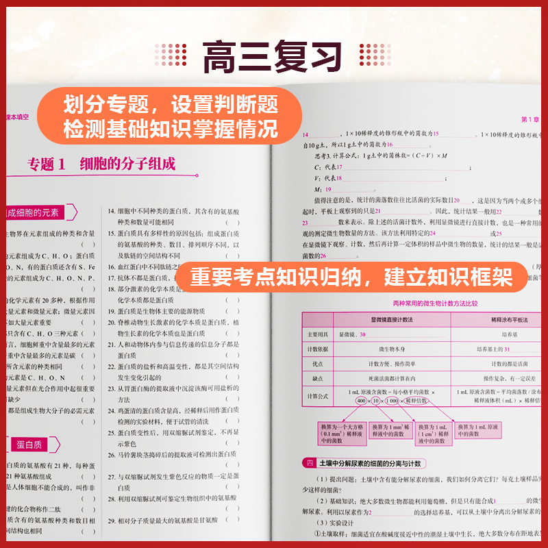 育甲2024新版 汉水丑生高中生物回归课本填空汉水丑生高中生物基础知识回归教材生物知识点大全高中生物专题训练全国通用
