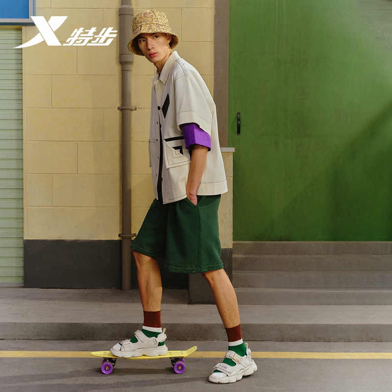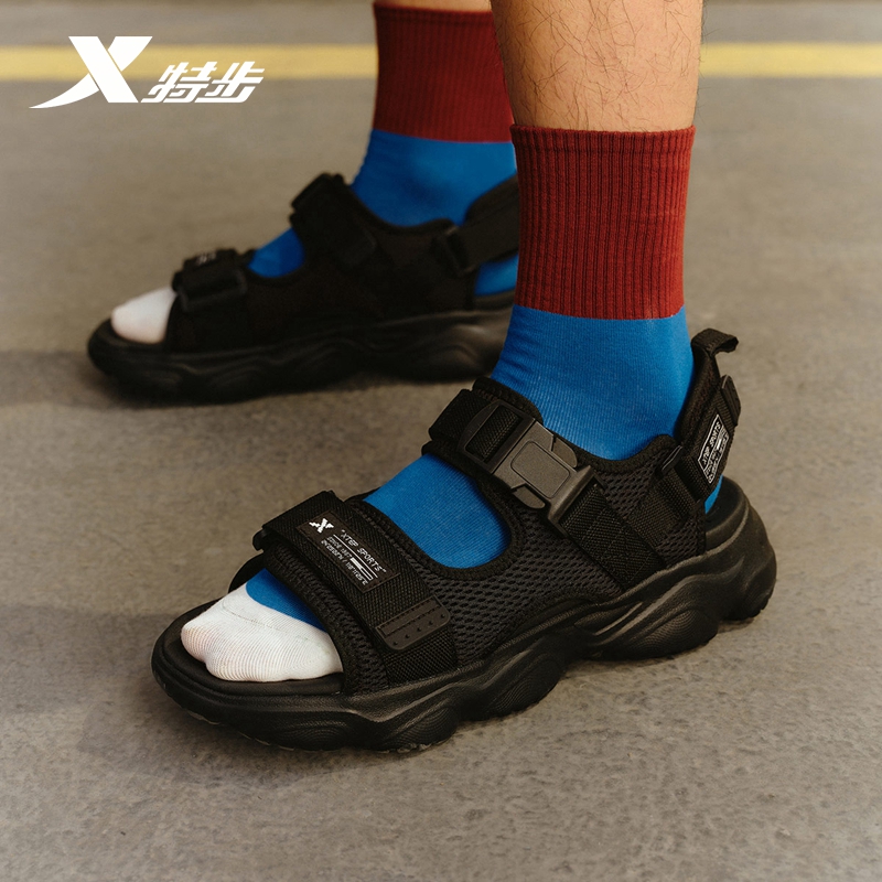 新款 2025夏季 轻便拖鞋 户外休闲沙滩鞋 男 特步凉鞋 魔术贴运动鞋 男鞋