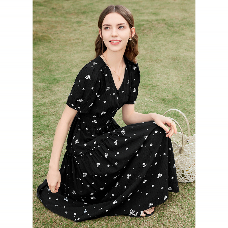 COCOBELLA对丝提花吊带裙女荷叶边度假风连衣裙FR156 折扣季