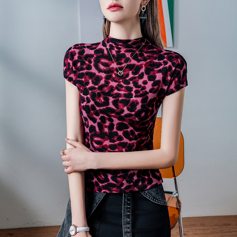 网纱木耳边打底衫 半高领雪纺衫 新款 t恤2021早秋上衣女装 蕾丝长袖