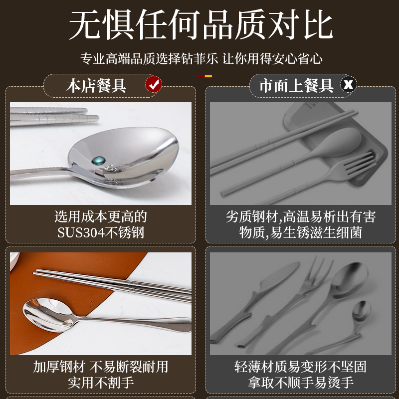 钻菲乐便携餐具两件套304不锈钢筷勺套装 收纳盒学生筷子勺子