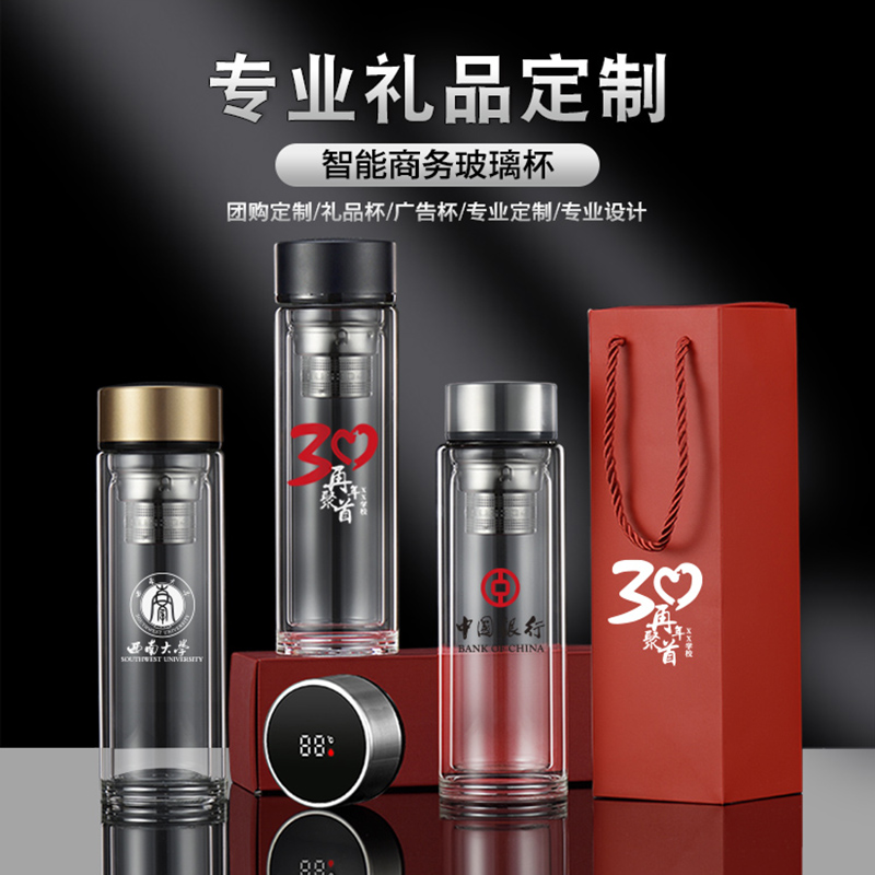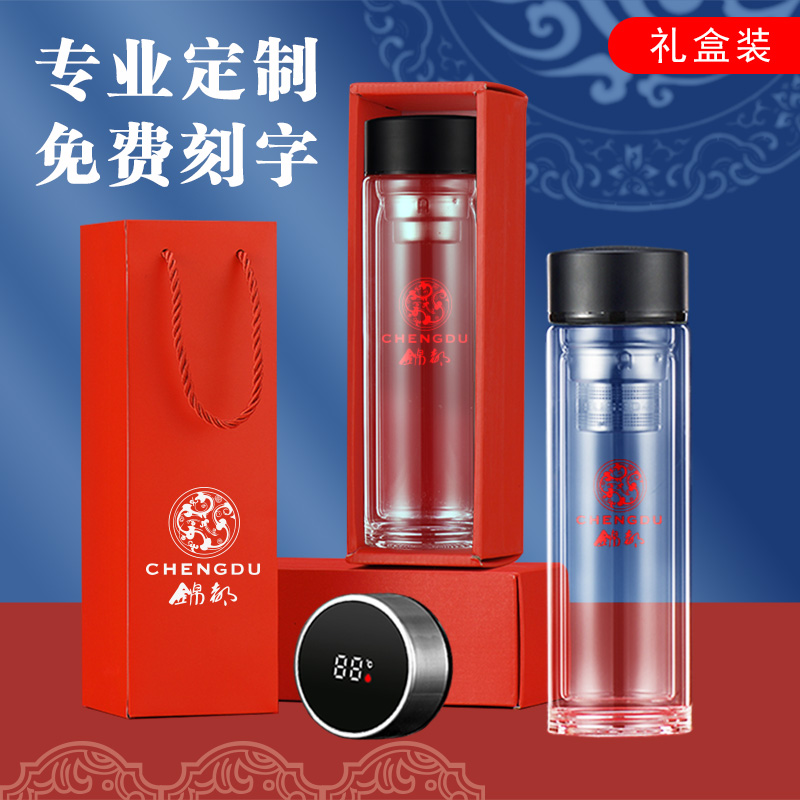 定制双层玻璃水杯刻字印logo广告杯子泡茶杯活动礼品开业赠品礼盒