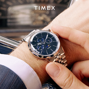 TIMEX天美时Marlin系列月相显示腕表三眼计时轻商务石英手表男士