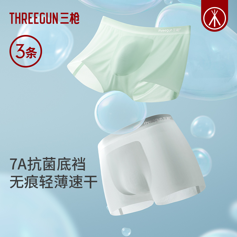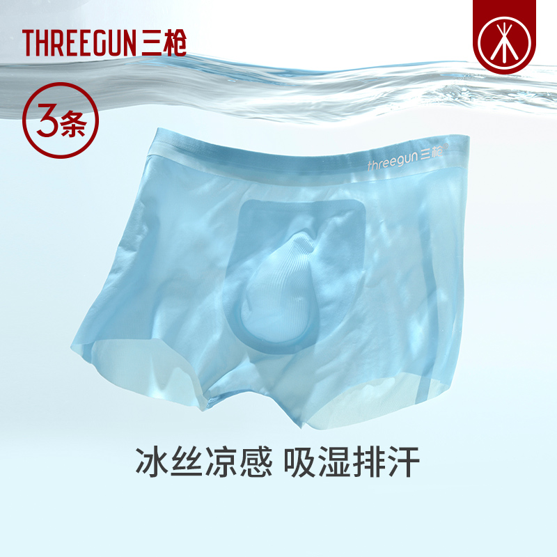 男冰丝凉感吸湿排汗无痕抗菌渐变薄透气大码 三枪内裤 防磨 3条