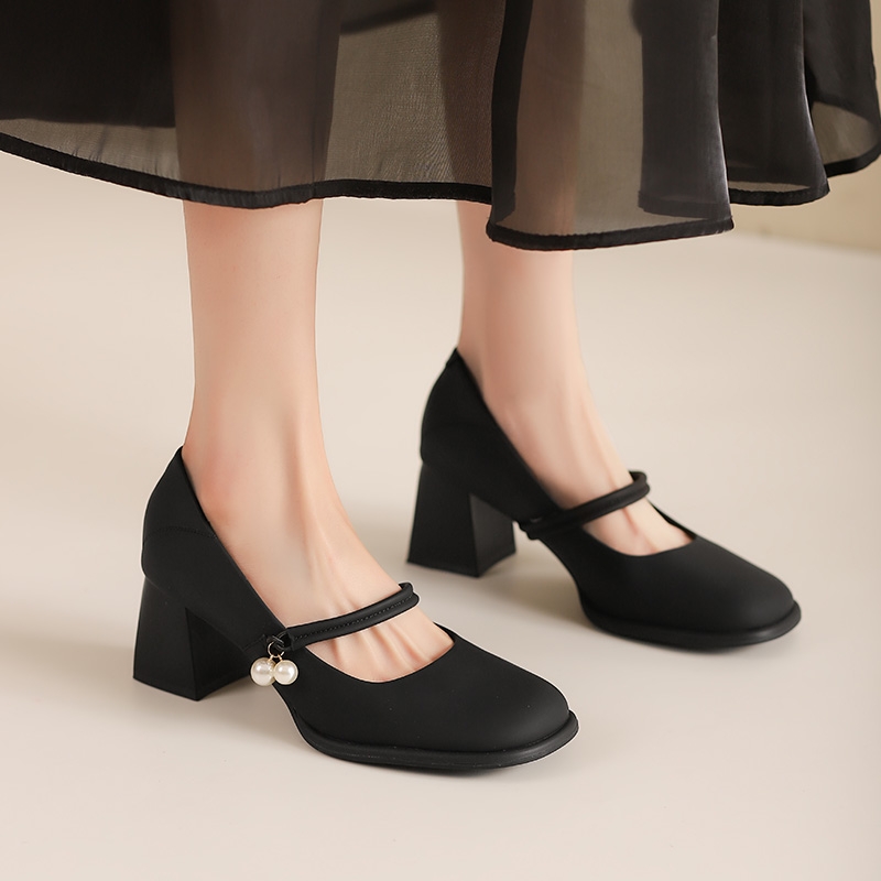 仙女风瓢鞋 秋季 浅口百搭中跟奶奶鞋 大码 真皮单鞋 女鞋 粗跟2025新款