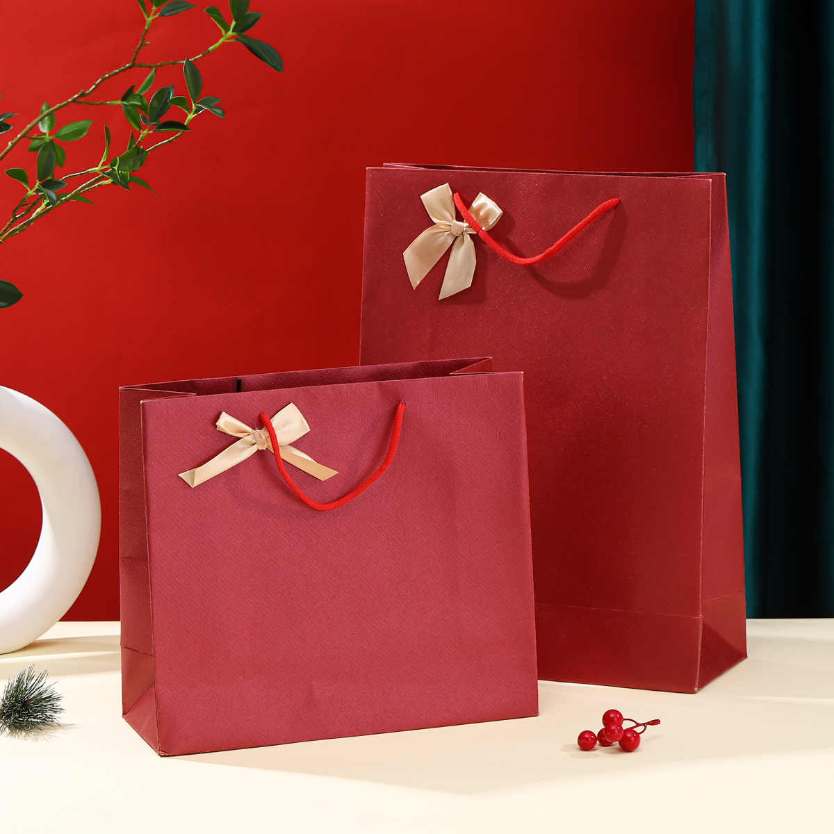 高档礼品袋特总纸红色服装 店礼物袋蝴蝶结纸袋子ins高级感手提袋