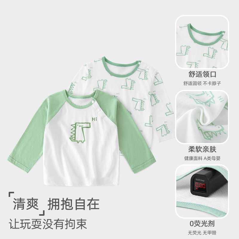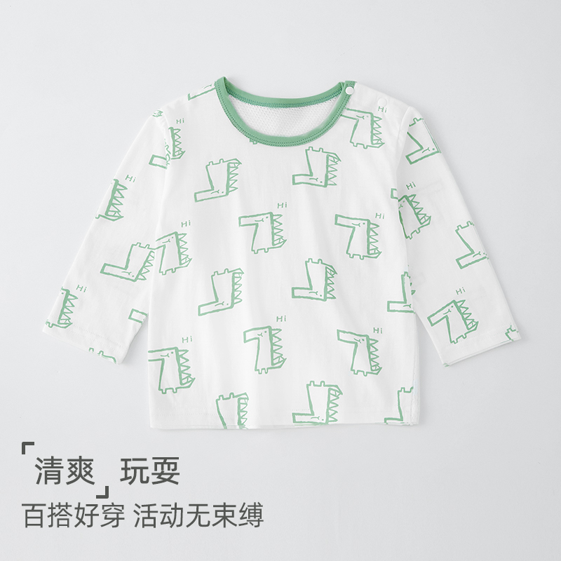 纯棉儿童空调服睡衣上衣透气 宝宝上衣婴儿夏季 男童t恤长袖 薄款