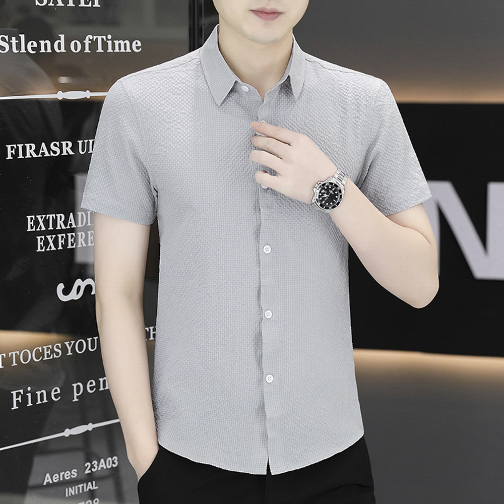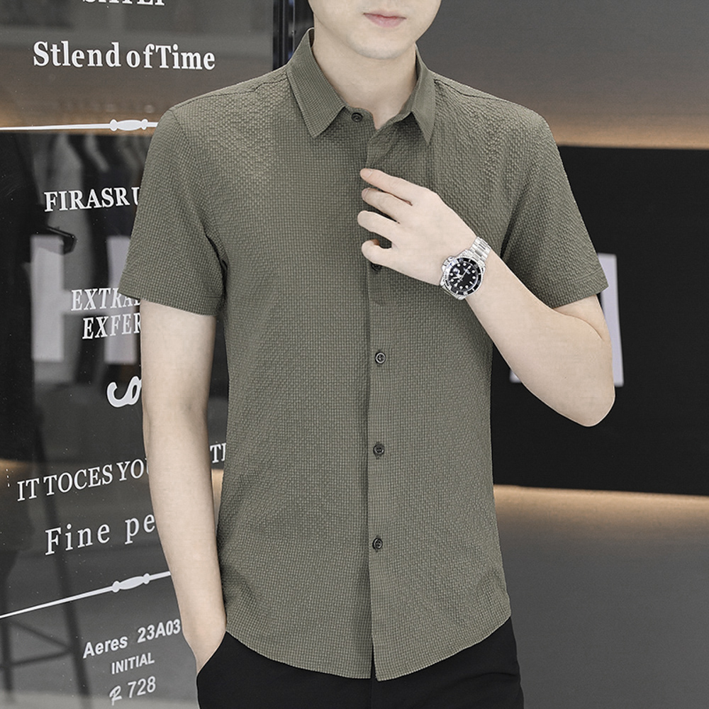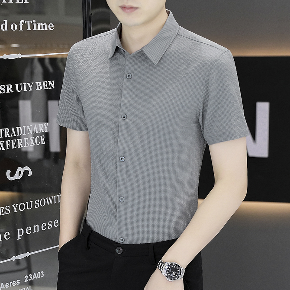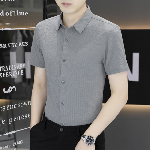 男士 冰丝凉感免烫百搭衬衣休闲寸衫 短袖 纯色商务正装 衬衫 2025夏季