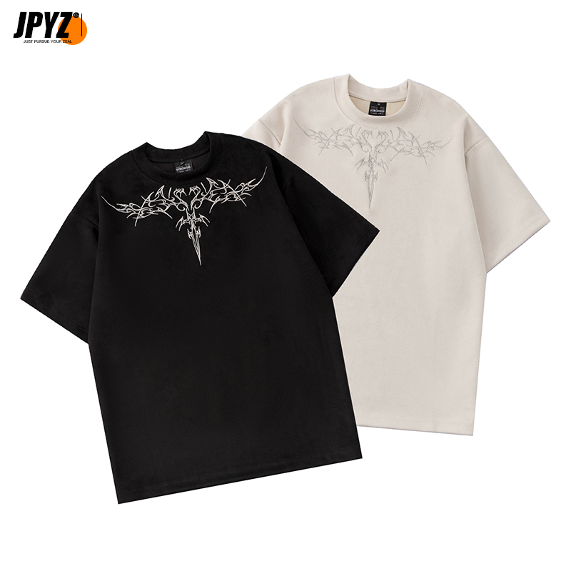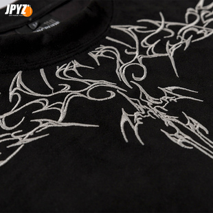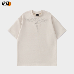 男生潮牌t恤纯棉圆领透气夏季 刺绣重磅国潮宽松休闲内搭上衣 薄款