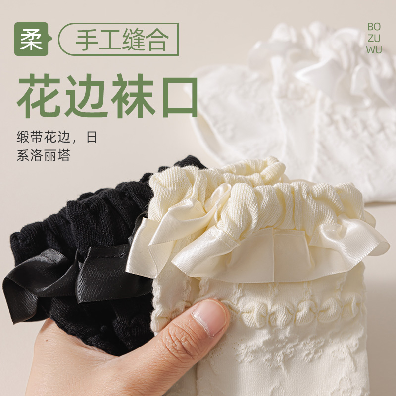 爆款 中筒袜纯棉月子袜2025新款 春秋花边长筒袜 薄款 堆堆袜子女夏季