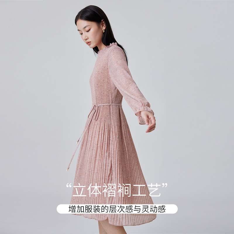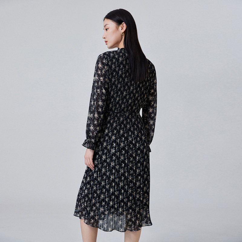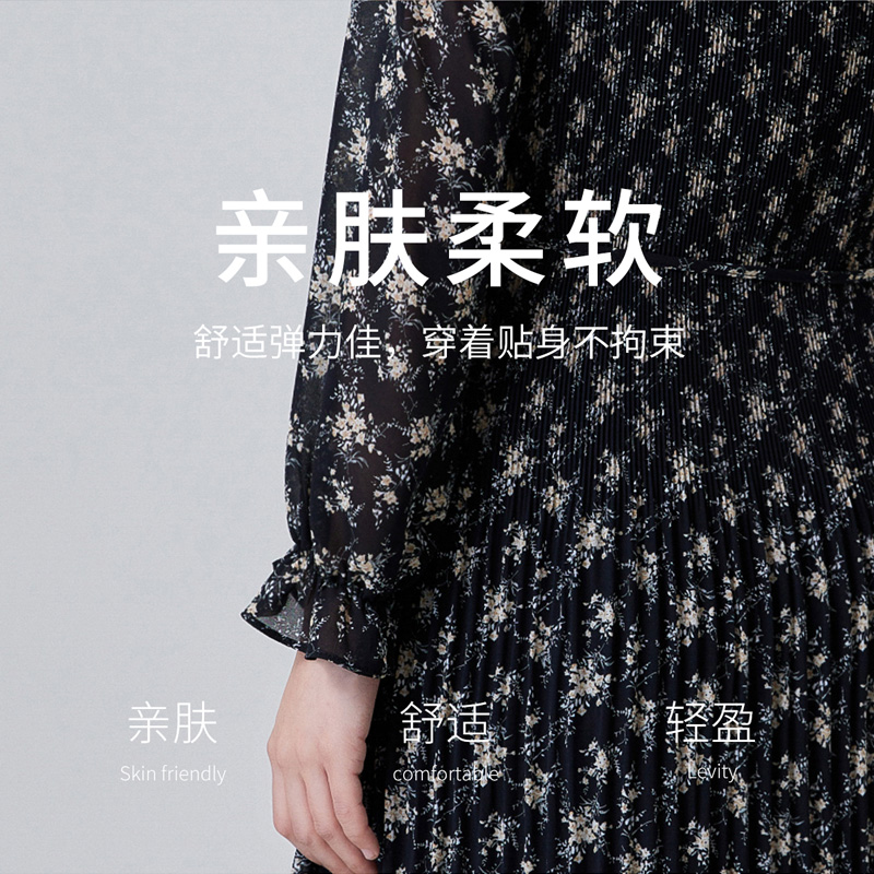 气质显瘦中长款 时尚 新款 连衣裙女2025年秋季 开叉裙子 褶皱拼接长袖