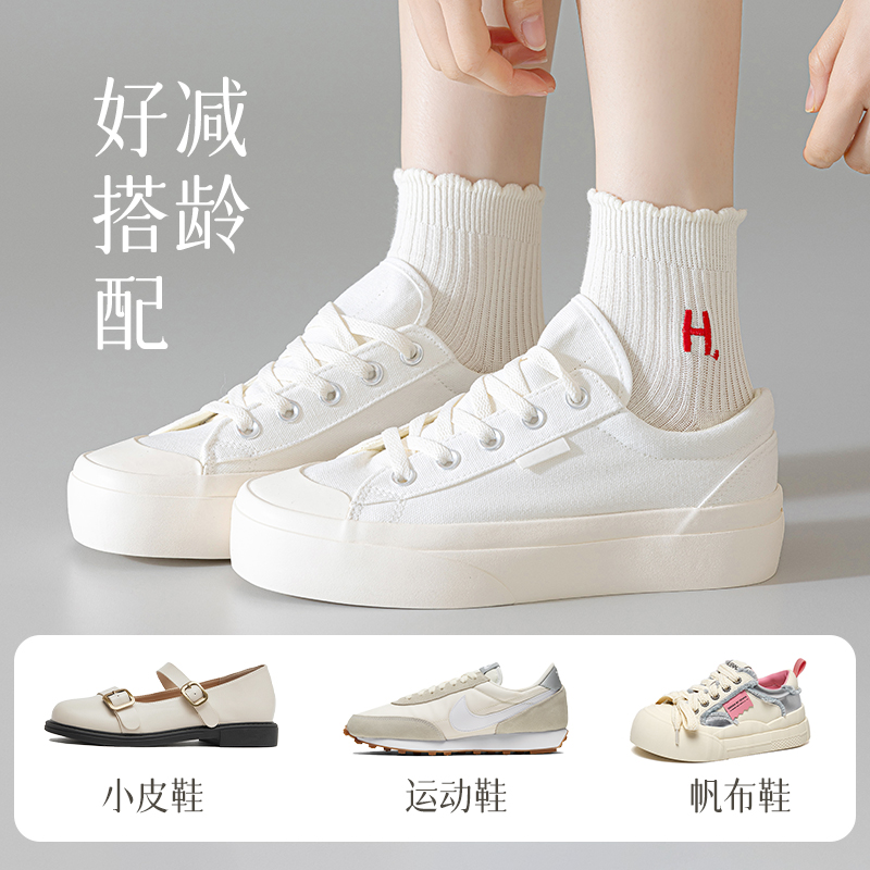 白色袜子女款 纯棉短袜全棉无骨防臭袜抗菌透气棉袜女士船袜 秋冬季