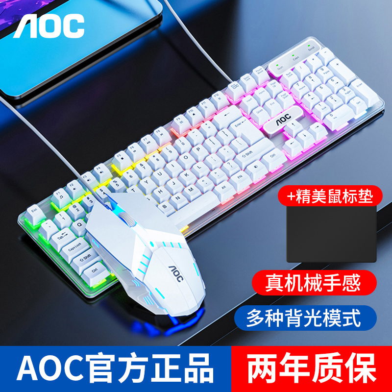 AOC有线键盘鼠标套装 电脑笔记本USB办公键鼠 发光游戏电竞专用台式