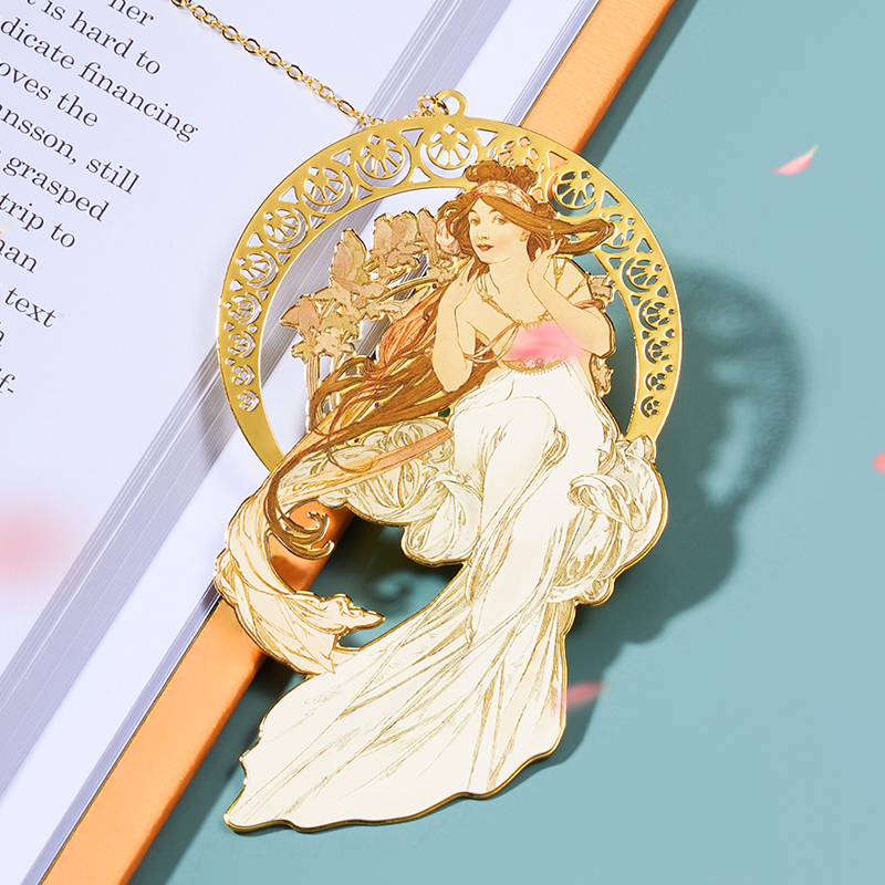 经典 插画艺术金属链饰书签 中商文创 MUCHA穆夏 唯美大师名画复古优雅文艺礼品黄铜 四艺—音 先锋新艺术运动 现货 20世纪时尚