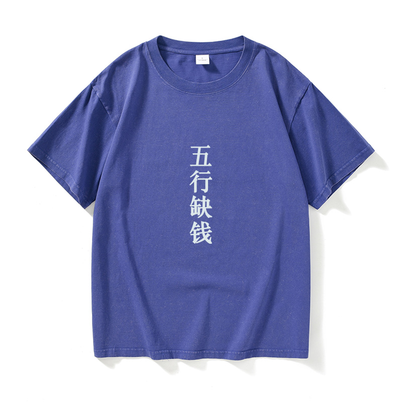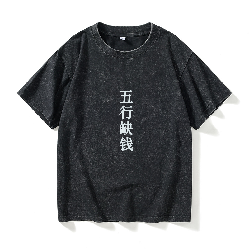 宽松夏季 衣服女男圆领大码 情侣 个性 五行缺钱文字汉字中文T恤短袖