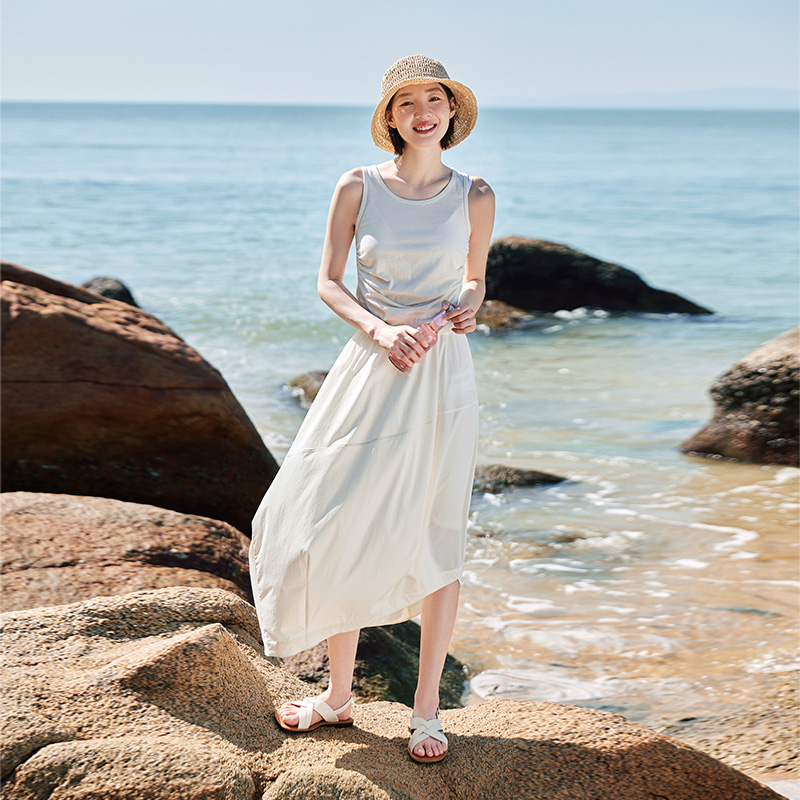 t恤打底衫 纯色百搭外穿无袖 新款 白色纯棉直筒吊带背心女内搭夏季