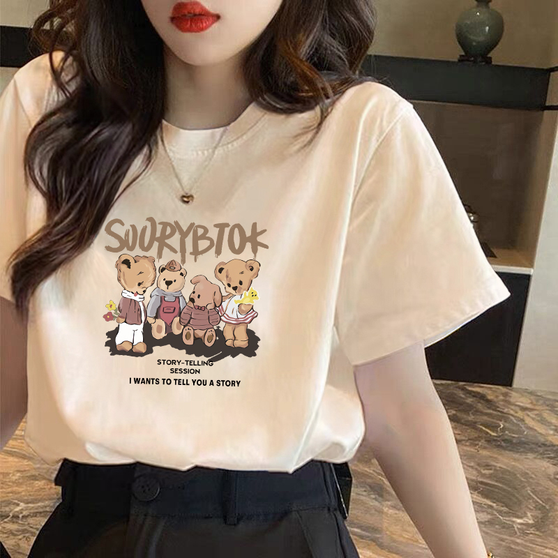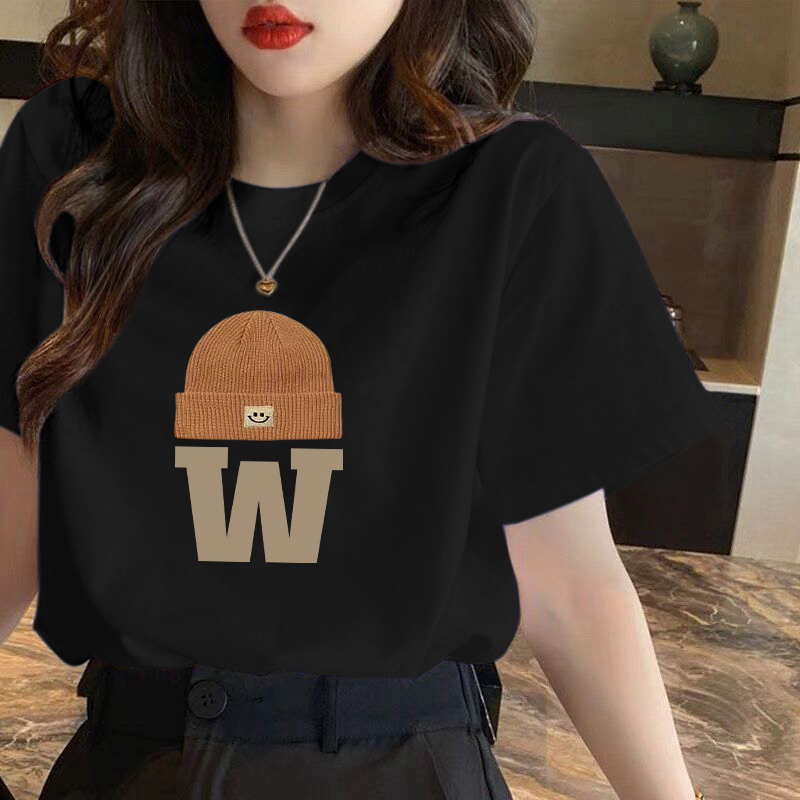 韩版 白色纯棉短袖 宽松上衣减龄小衫 夏季 百搭印花潮 t恤女2025新款