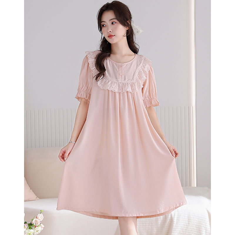 公主风蕾丝莫代尔裙子夏天睡衣薄款 2024新款 天丝麻睡裙女短袖 夏季