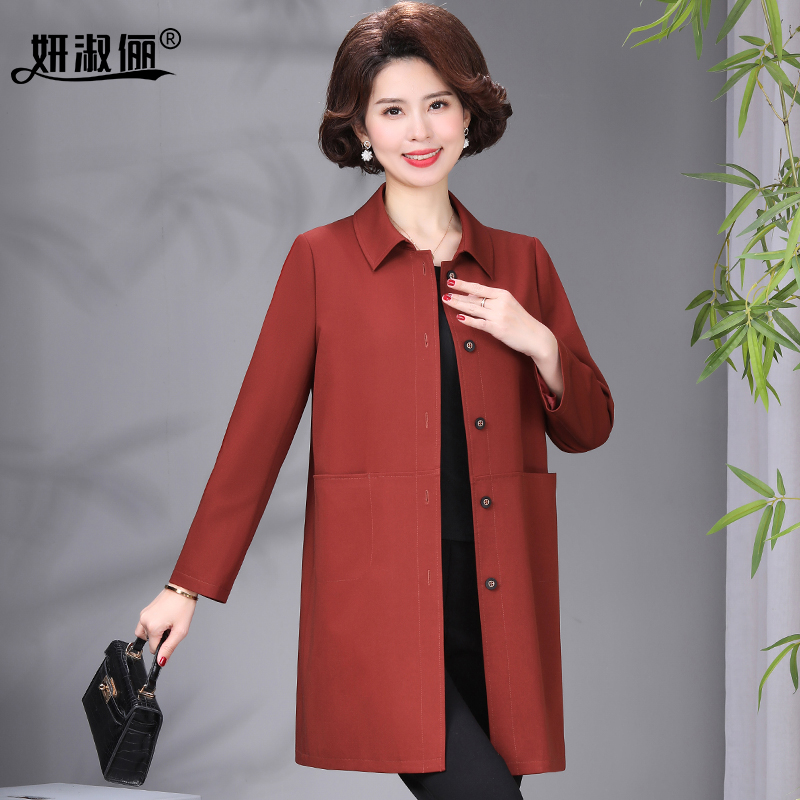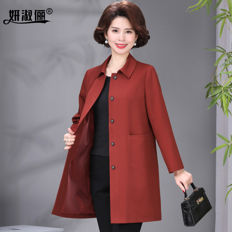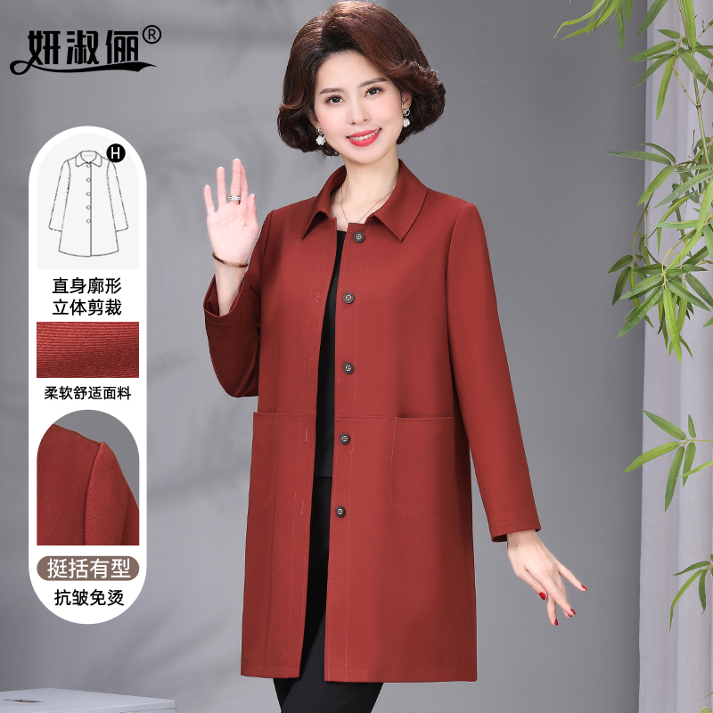 外套红大衣 中长款 贵夫人品牌妈妈洋气风衣2025新款 春秋中老年女装