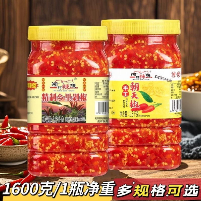 湖南剁辣椒手工米辣椒酱正宗原味微辣特辣香辣中辣下饭菜商用瓶装