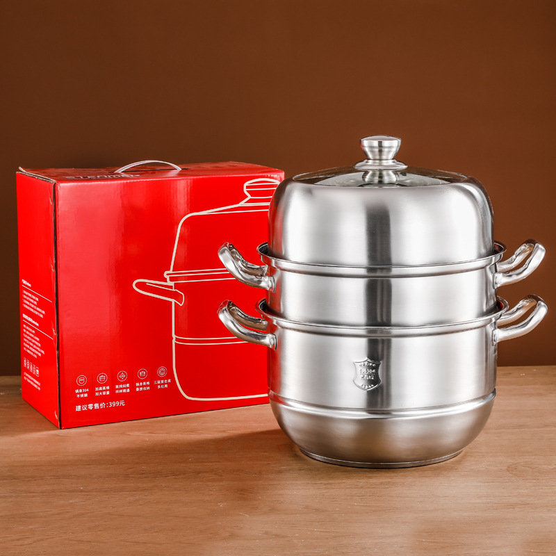 加厚多层蒸锅家用蒸煮两用大容量蒸锅电磁炉灶不锈钢礼品蒸锅