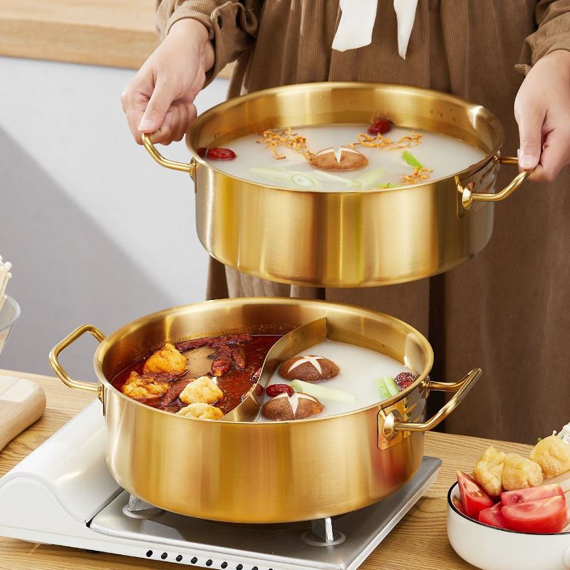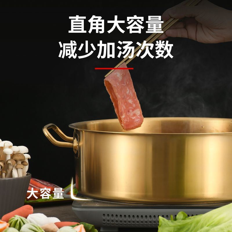 韩式 餐厅商用不锈钢火锅金色鸳鸯锅直角锅电磁炉煤气炉专用厚火锅