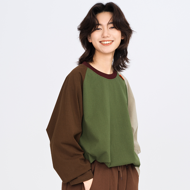 T恤四色拼接纯棉长袖 吉考斯工业2025游戏 人系列男女复古插肩袖