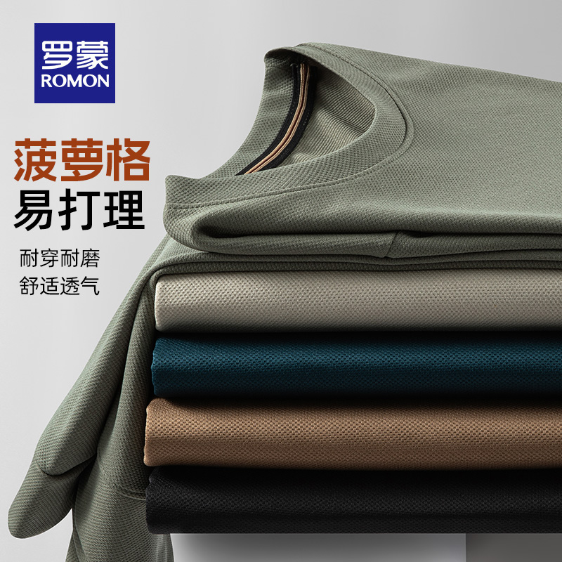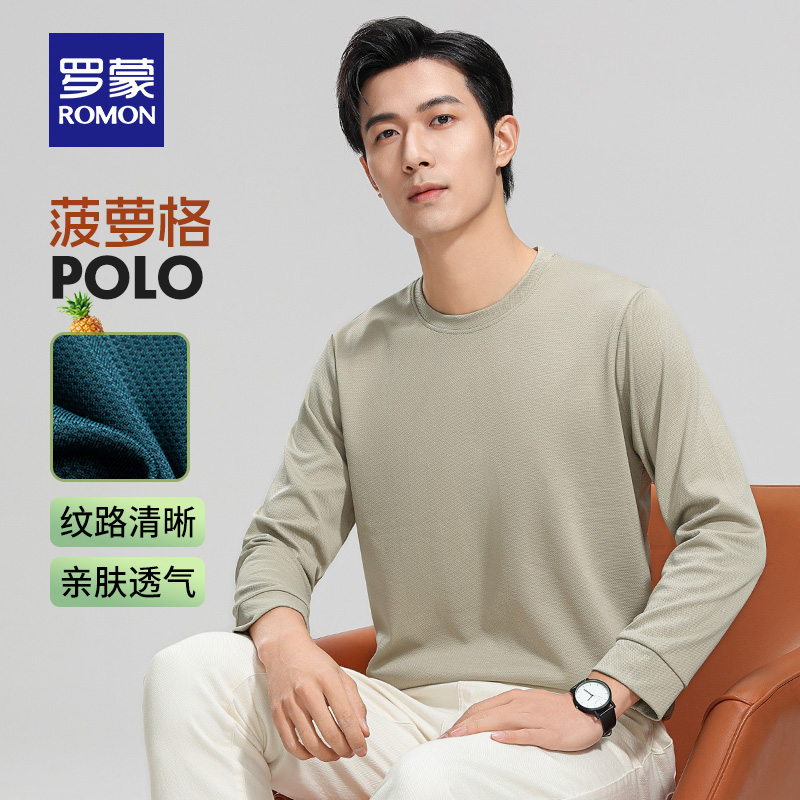 菠萝格 新款 罗蒙男士 圆领T恤2025夏季 舒适透气打底衫 休闲长袖