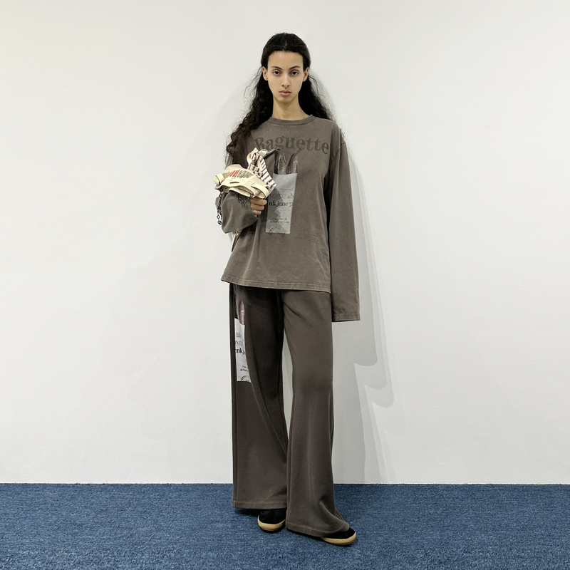 复古法棍印花长袖 新款 2025春季 T恤女J510557301B 设计师款