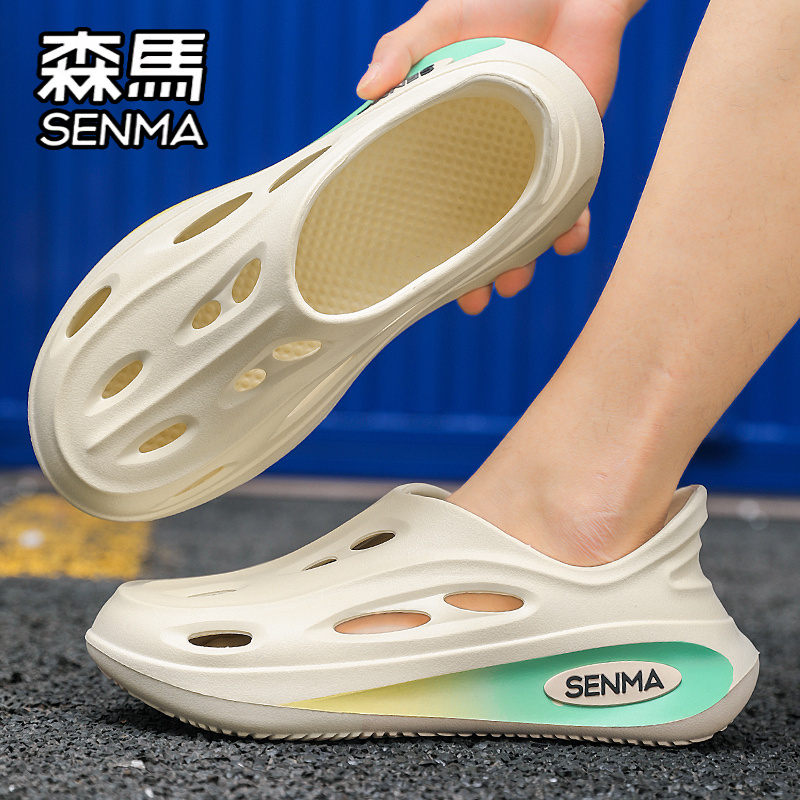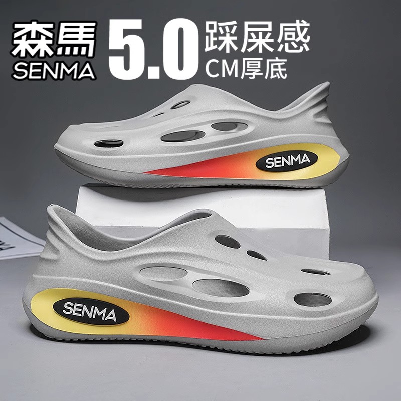 男款 运动沙滩凉鞋 夏季 大码 外穿防滑防臭踩屎感包头拖鞋 森马洞洞鞋