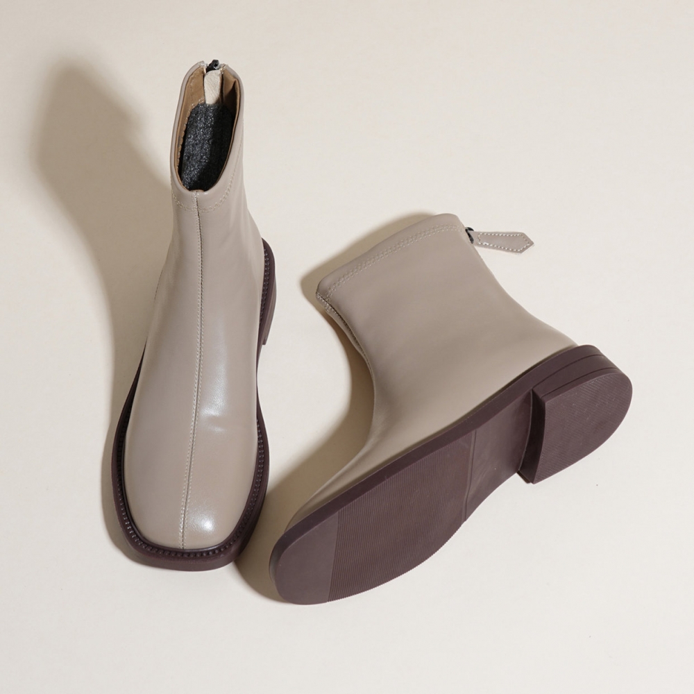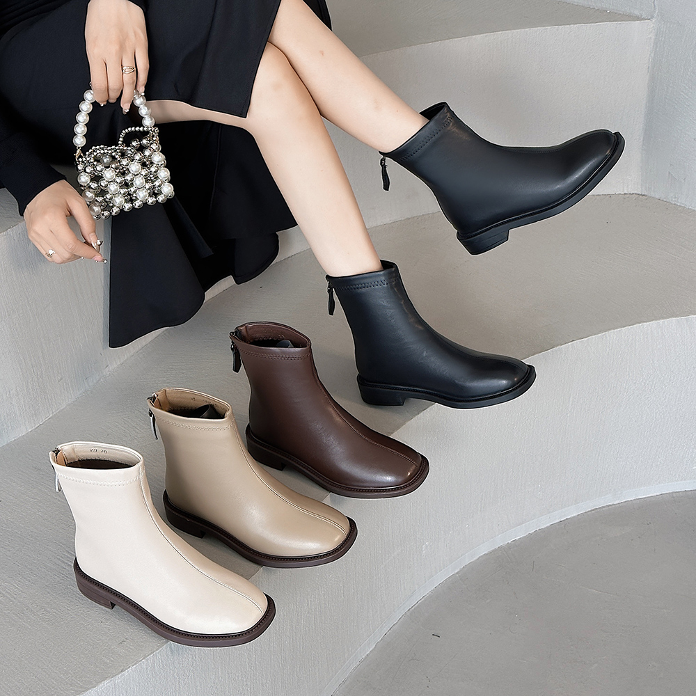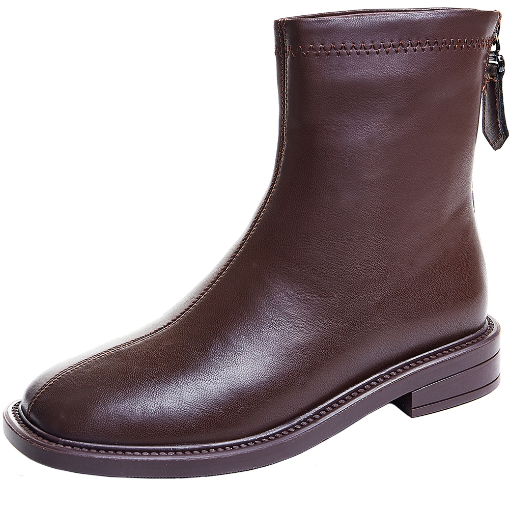 真皮短靴女2024冬季 百搭平底弹力瘦瘦靴显瘦马丁靴女春秋单靴 新款