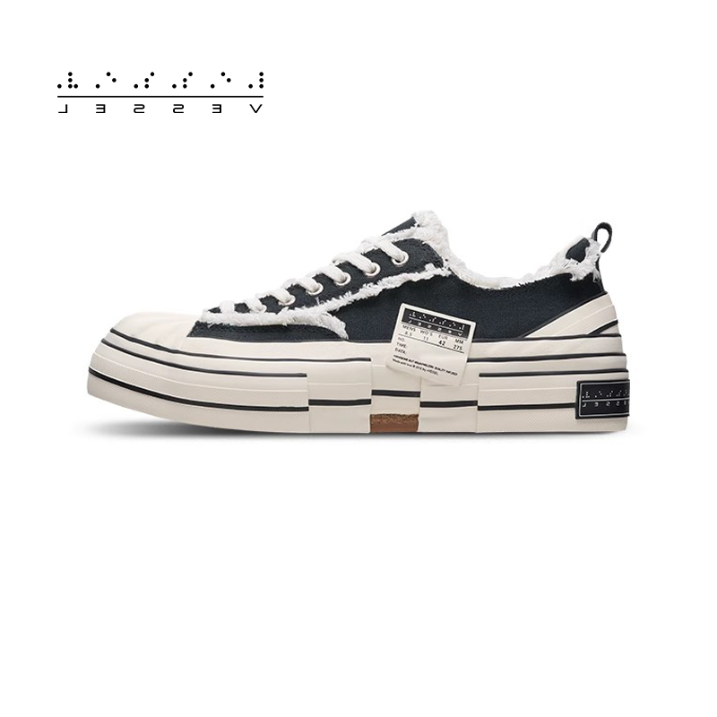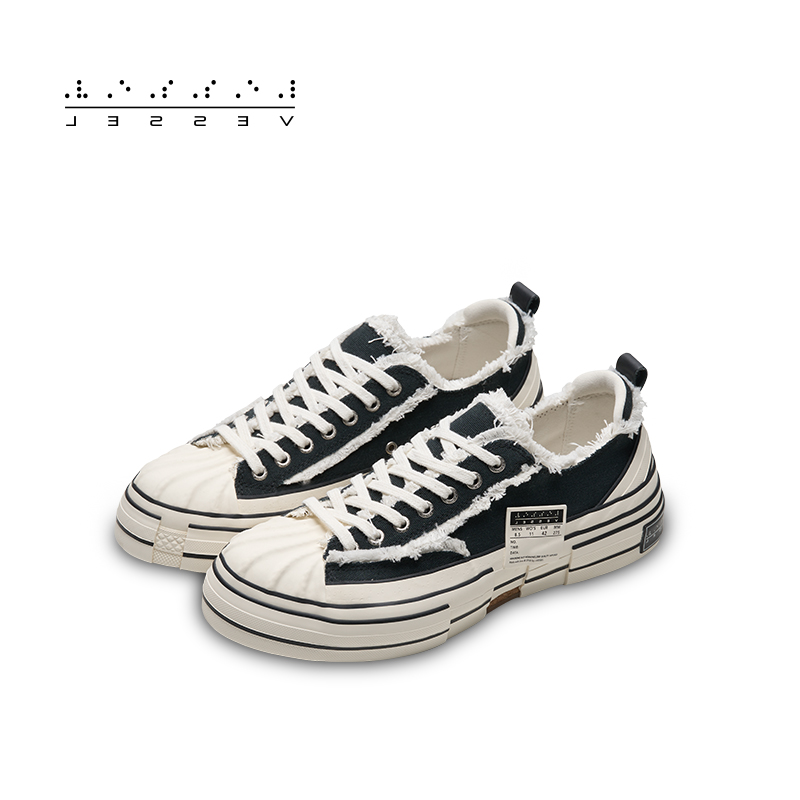顽刻官方海军蓝春季 校园风W系列翻毛皮帆布拼接男女国潮滑板鞋