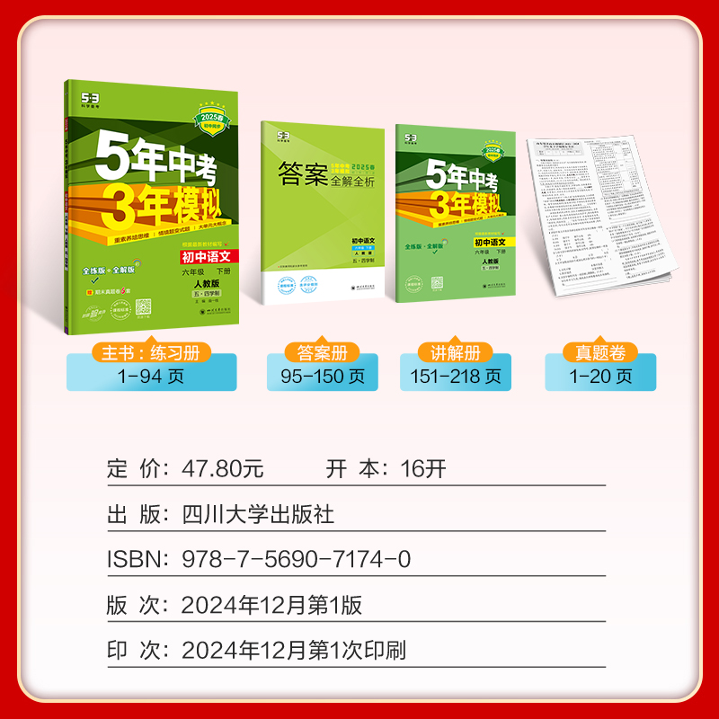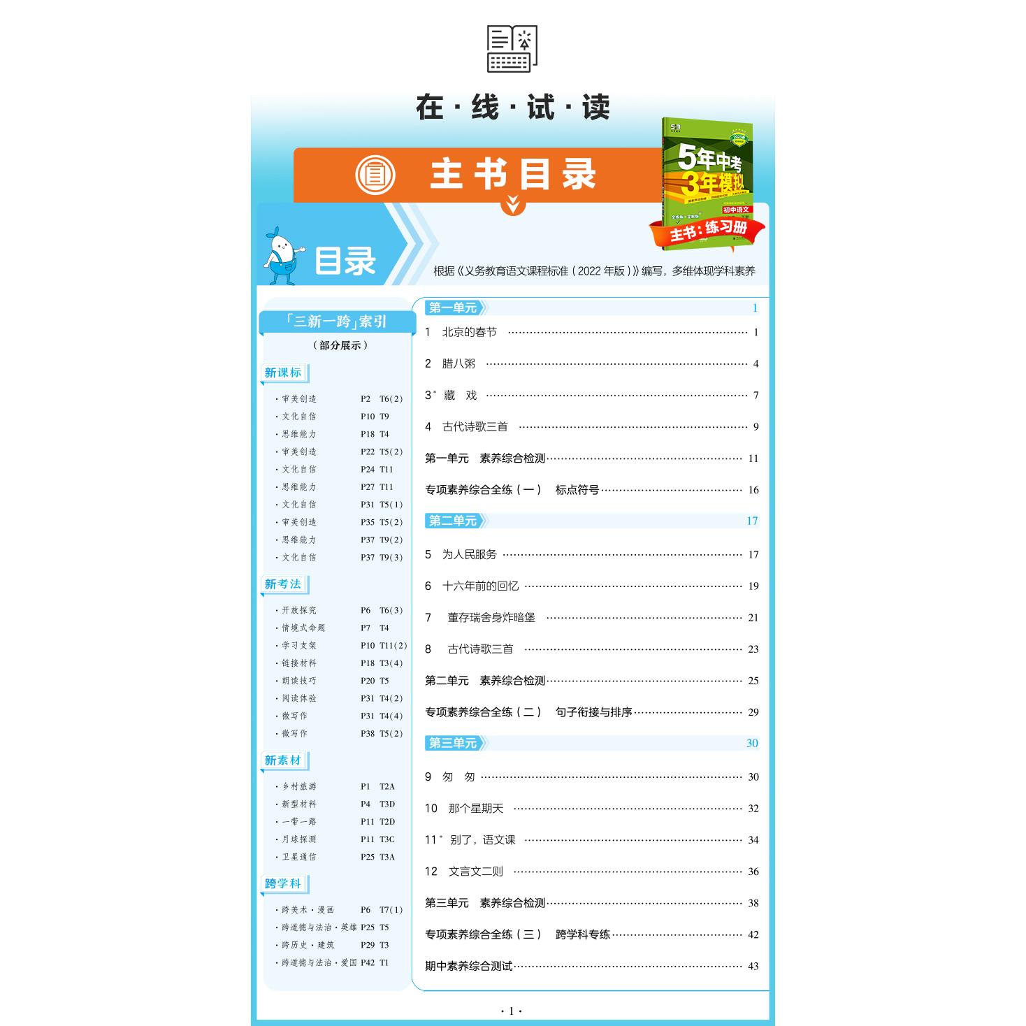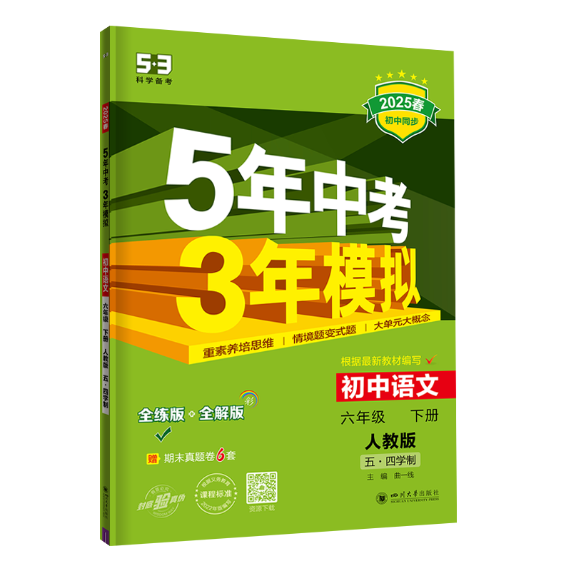 53初一6年级下54学制语文教材同步练习册五年中考三年模拟 下册5年中考3年模拟同步跟课训练 2025山东版 六年级语文五四制人教版