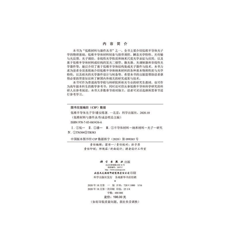 科学出版 潘安练 社 低维半导体光子学 全新正版