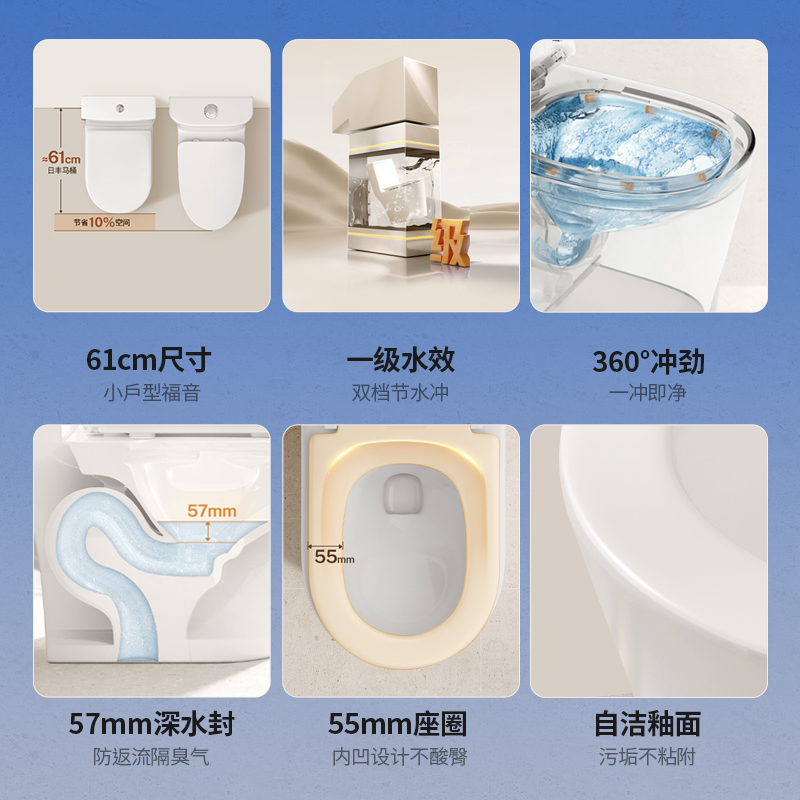 日丰RIIFO61cm小户型虹吸式 1136 马桶家用坐便器节水防臭坐厕B