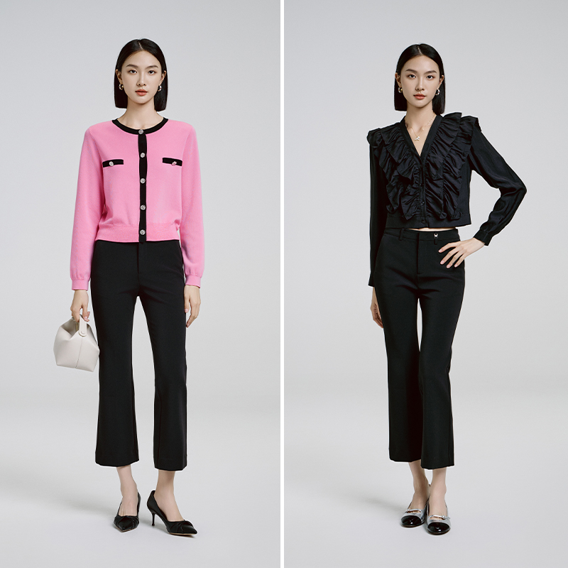 2025春季 九分裤 新款 百搭气质女裤 子 时尚 恩瑞妮中高腰显瘦喇叭裤