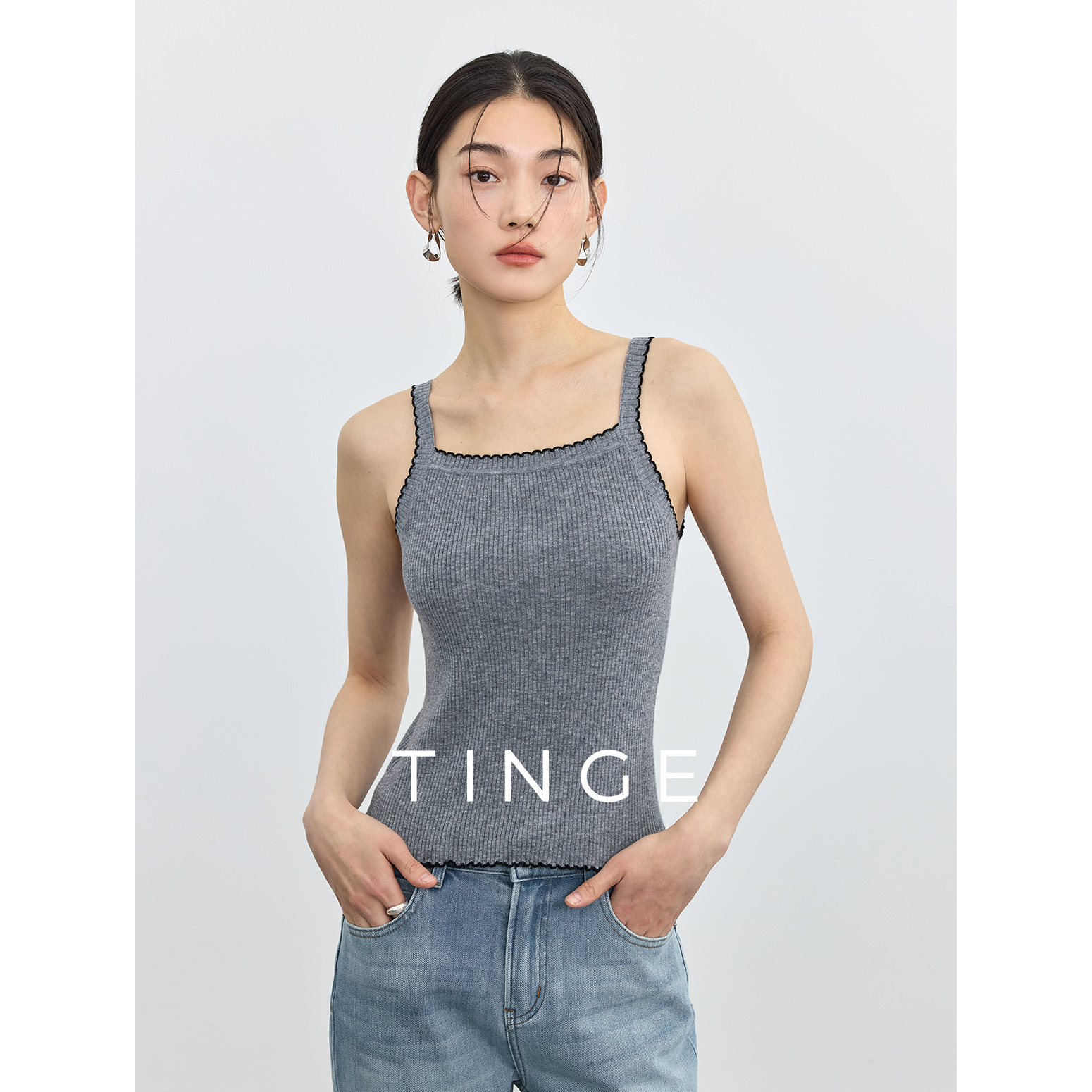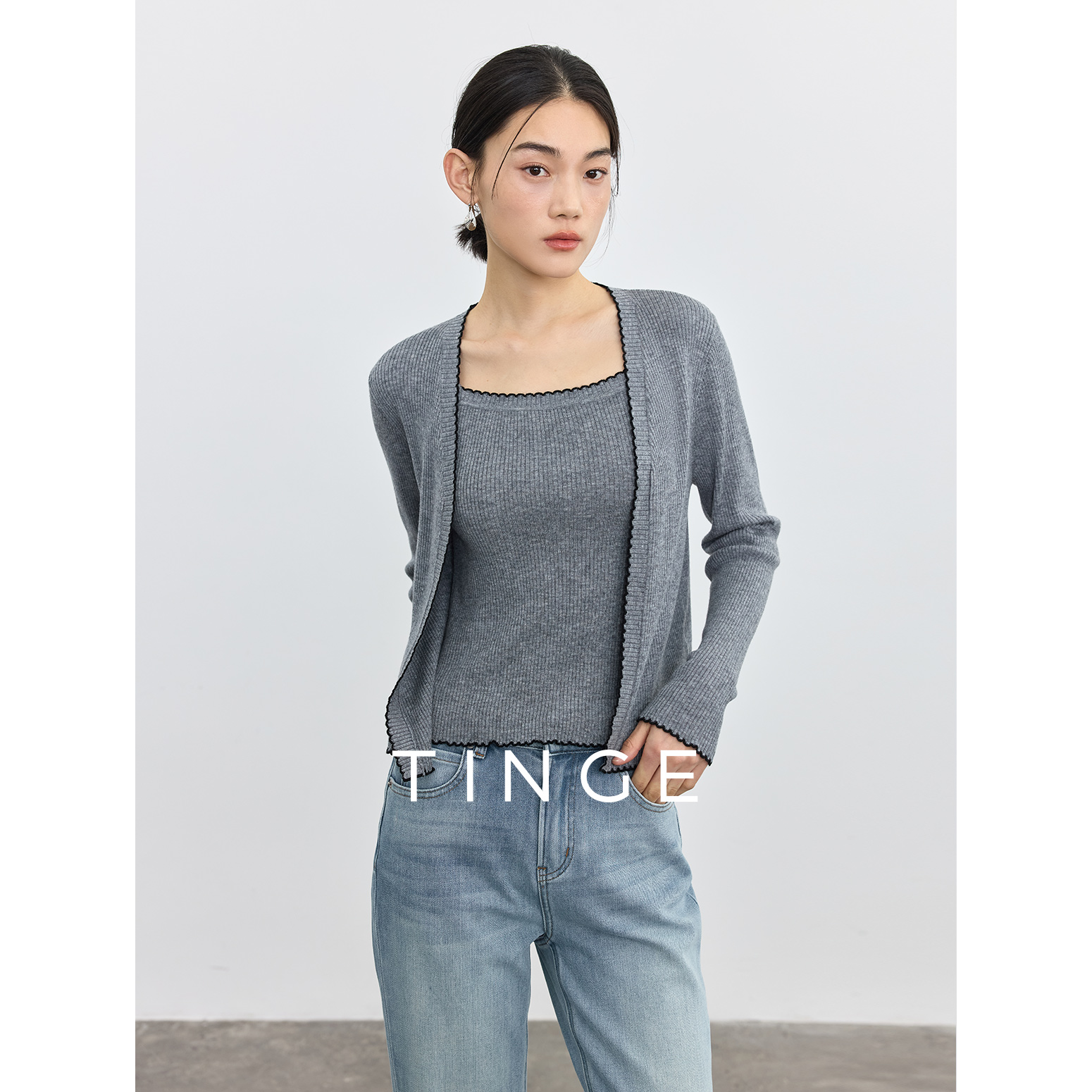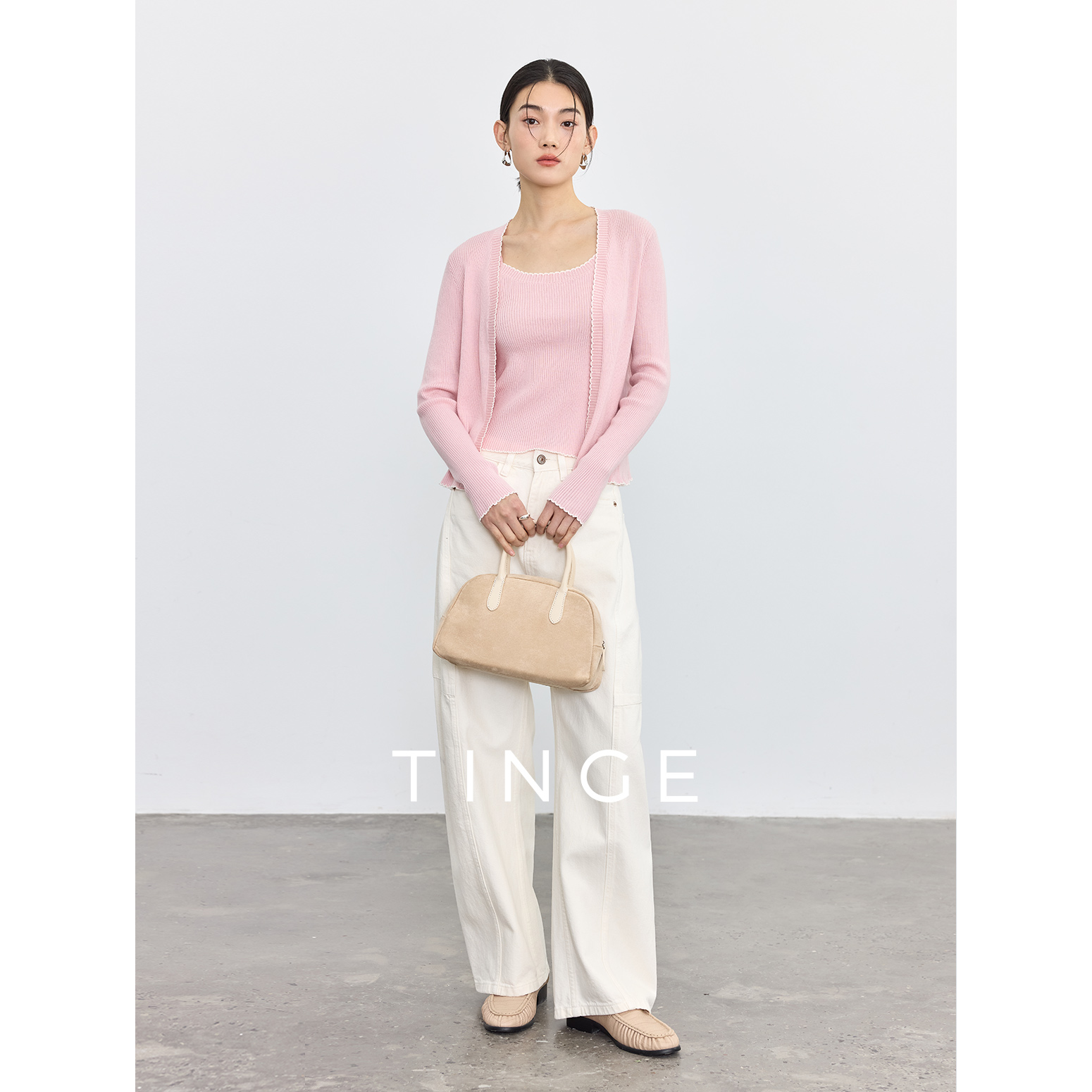 TINGE贴己花边撞色无扣吊带开衫 女春夏穿搭含羊毛可机洗上衣 套装