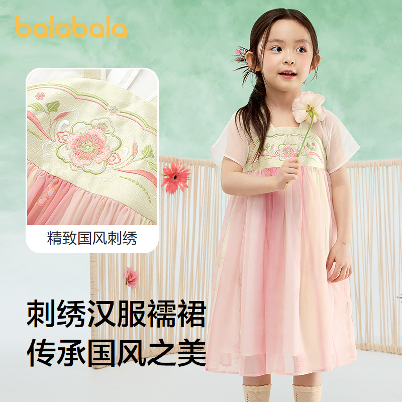 宝宝 刺绣国风汉服襦裙新中式 巴拉巴拉女童连衣裙唐装 公主裙子夏装
