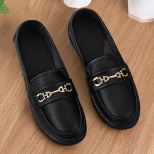 平底浅口单鞋 一脚蹬黑色英伦风小皮鞋 女2025新款 BeauToday乐福鞋