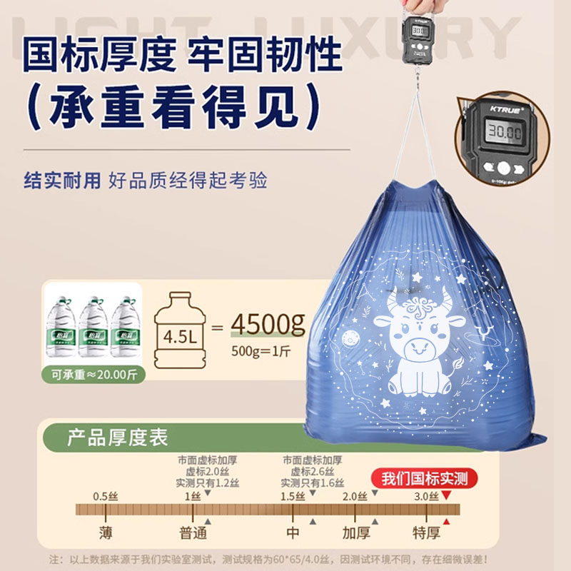 特厚垃圾袋免撕抽绳家用加厚手提式 厨房专用大号超厚厨余塑料袋
