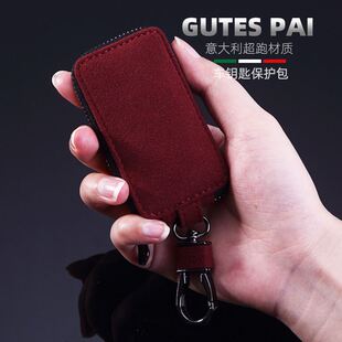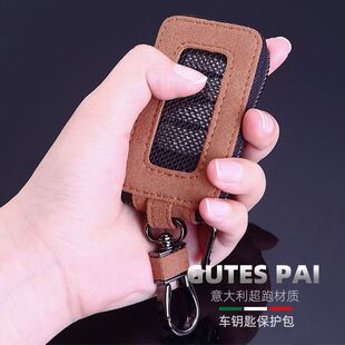 翻毛皮汽车钥匙包意大利风格 遥控拉链带窗五金扣男女通用车钥匙扣