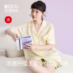 高级感防螨抗菌宽松A类家居服套装 红豆冰丝睡衣女短袖 凉感夏薄款