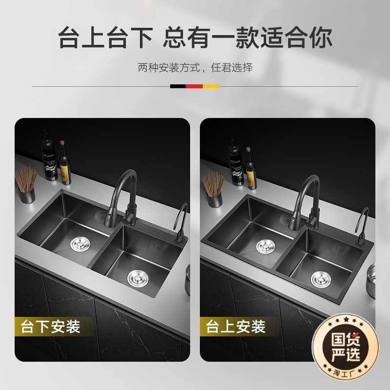 厨房水槽洗菜盆双槽家用加厚304不锈钢水槽手工台中下盆洗碗水池