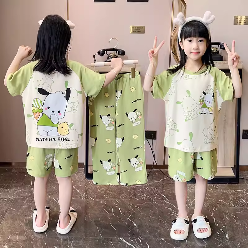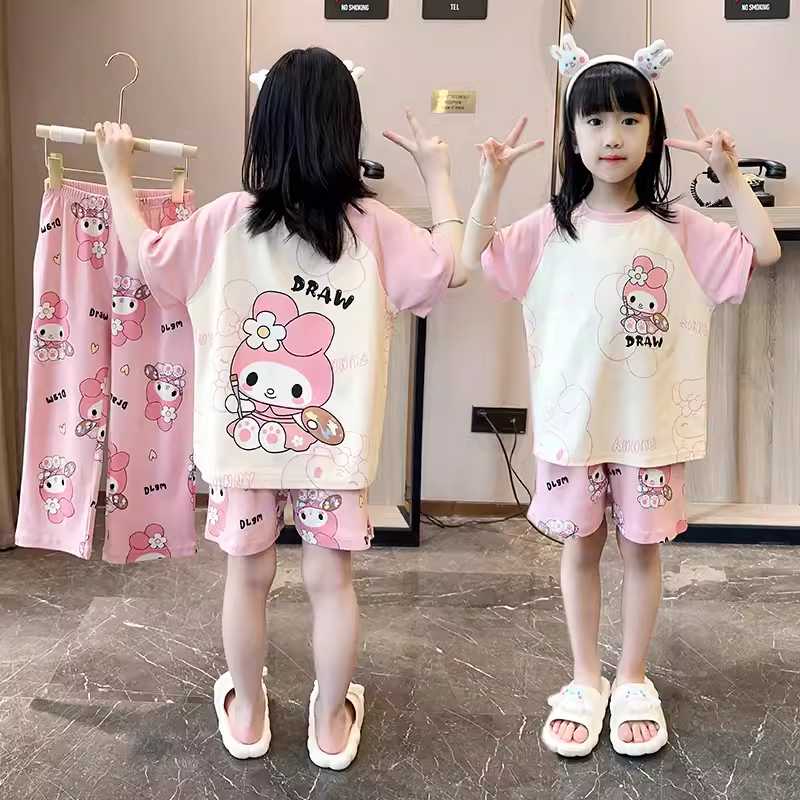 长裤 三件套女童睡衣儿童2025薄款 短袖 卡通新款 女孩春秋家居服 夏季