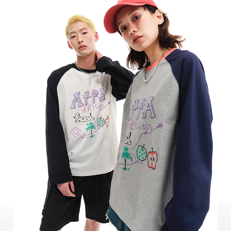 长袖 插肩袖 T恤 纯棉宽松透气 APPARITION 男女同款 艺术插画印花