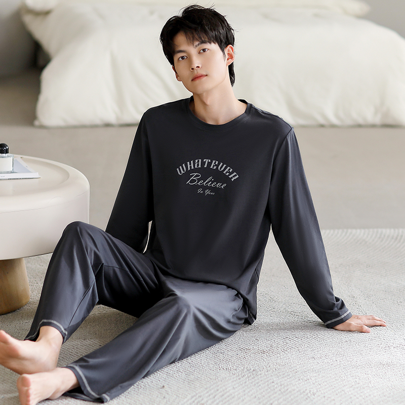 2025新款 莫代尔薄款 夏季 睡衣男士 青少年家居服套装 长袖 大码 春秋款