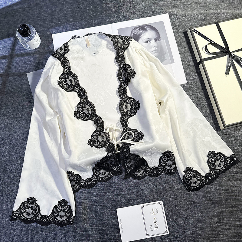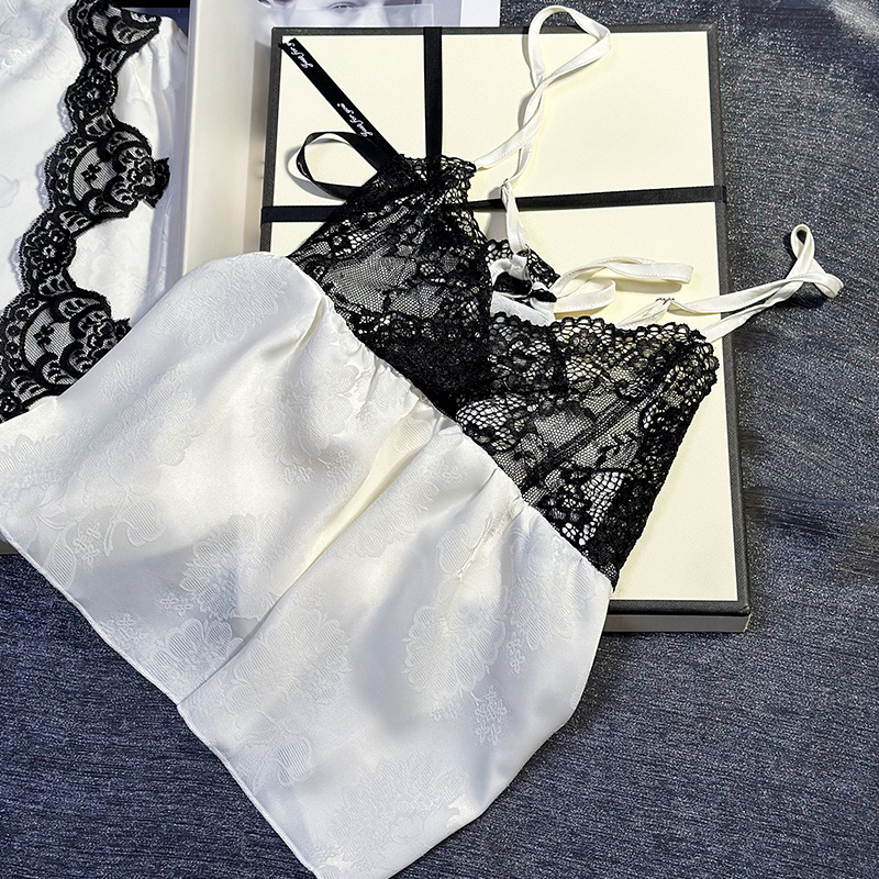 斯服玛睡衣女春秋冰丝薄款 家居服 纯欲风蕾丝性感吊带四件套长袖