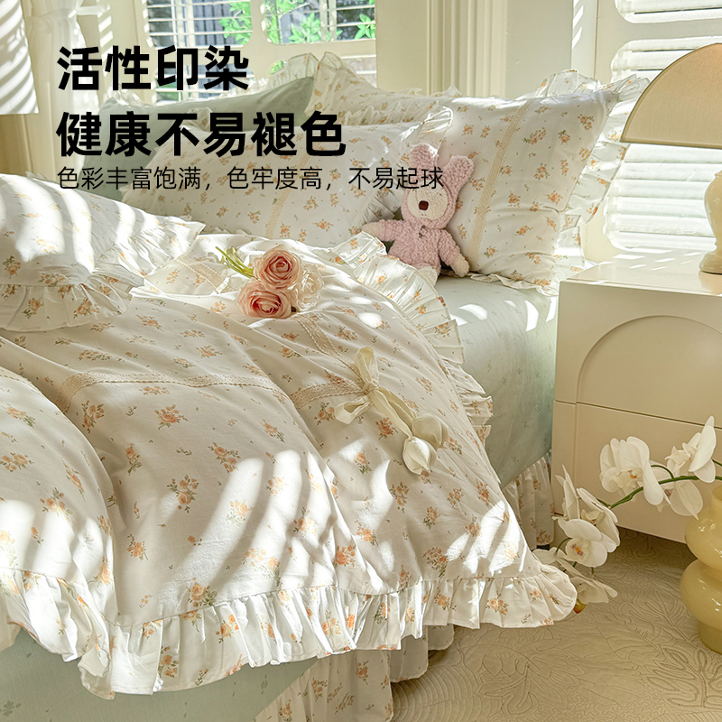 无印良品少女心100全棉床上四件套纯棉公主风花边被套床单床品4