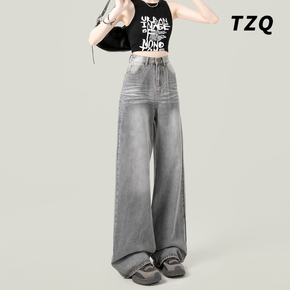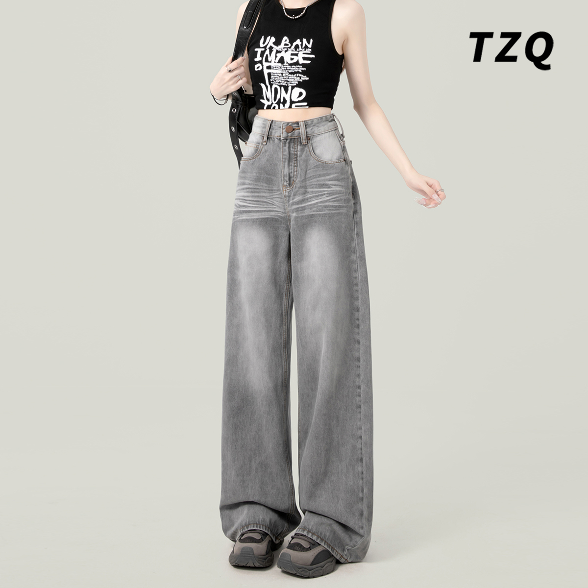 高街复古阔腿裤 迈特优烟黑色牛仔裤 宽松直筒美式 新款 子 男秋季